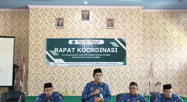 Batulicin (Kemenag Tanbu) – Kantor Kementerian Agama (Kemenag) Kabupaten Tanah Bumbu menggelar Rapat Koordinasi bersama seluruh satker di lingkup Kemenag Tanah Bumbu yang dipimpin langsung oleh Kepala Kantor Kemenag Tanah Bumbu Drs. H. Rusbandi, MA bertempat di Aula Kantor Kemenag Tanah Bumbu, Selasa (17/09/24).