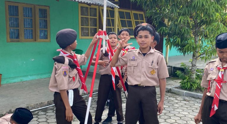 Siswa MTsN 1 Tanah Bumbu Asah Keterampilan Pioneering dalam Kegiatan Pramuka