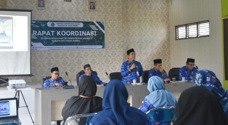 Batulicin (Kemenag Tanbu) – Kementerian Agama (Kemenag) Kabupaten Tanah Bumbu melaksanakan Rapat Koordinasi bulan Oktober yang diikuti oleh seluruh jajaran Kemenag Tanah Bumbu dan pimpinan satker di lingkup Kemenag Tanah Bumbu bertempat di Aula Kantor Kemenag Tanah Bumbu, Kamis (17/10/24).