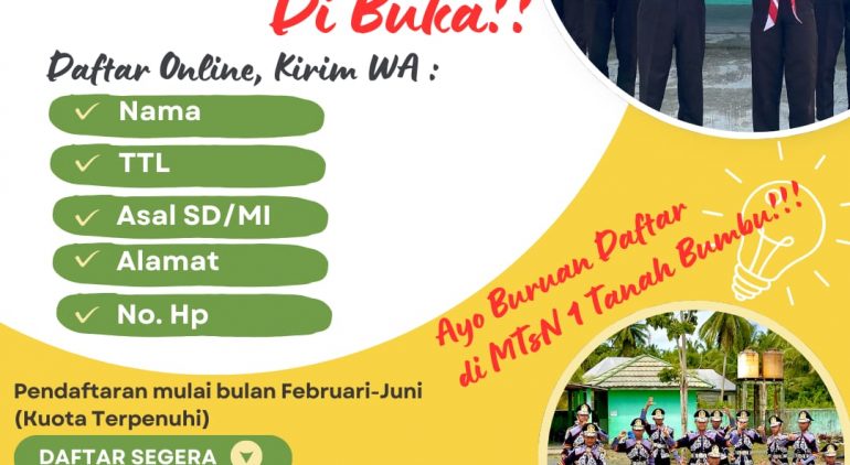 Kusan Hilir (MTsN 1 Tanbu) – Madrasah Tsanawiyah Negeri 1 Tanah Bumbu (MTsN 1 Tanbu) secara resmi membuka Penerimaan Peserta Didik Baru Madrasah (PPDBM) Tahun Pelajaran 2025/2026 secara online.