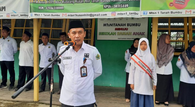 Kusan Hilir (MTsN 1 Tanbu) – Kepala Seksi Pendidikan Madrasah (Kasi Penmad) Kantor Kementerian Agama Kabupaten Tanah Bumbu (Kemenag tanbu), H. Mahmud, S.H.I., M.A., menjadi pembina upacara, dalam amanatnya H.Mahmud menyampaikan beberapa poin penting terkait pembelajaran di bulan Ramadhan dan imbauan kepada siswa serta seluruh Aparatur Sipil Negara (ASN) Madrasah Tsanawiyah Negeri 1 Tanah Bumbu (MTsN 1 Tanbu), Senin (10/02/25).