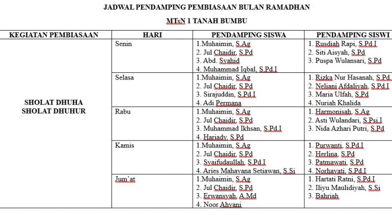 MTsN 1 Tanah Bumbu Siapkan Jadwal Pendampingan Kegiatan Keagamaan Ramadan