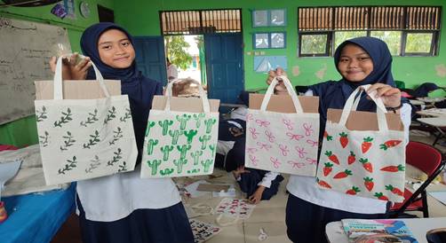 Siswa MTsN 3 Tanah Bumbu Uji Coba Seni Grafis Tingkat Tinggi dengan Bahan Alam