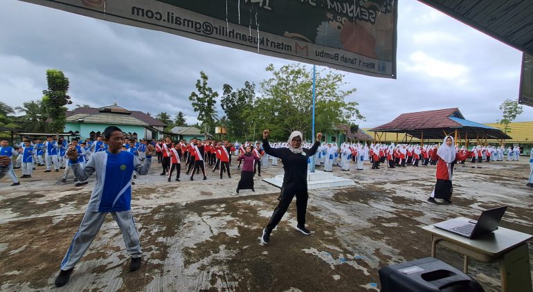 Kembali Bugarkan Badan, Siswa MTsN 1 Tanah Bumbu Lakukan Senam Bersama