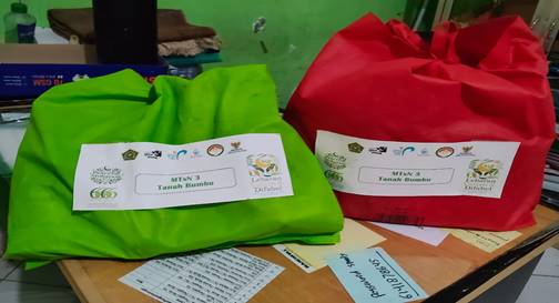 Satui (MTsN 3 Tanbu) – Sebanyak 40 Paket Peduli Kasih yang disediakan oleh Keluarga Besar Madrasah Tsanawiyah Negeri (MTsN) 3 Tanah Bumbu akan siap dibagikan kepada anak yatim dan penyandang difabilitas yang ada di lingkunga madrasah.