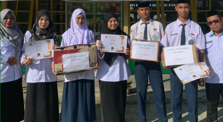 Kusan Hilir (MTsN 1 Tanbu) – Usai pelaksanaan kegiatan Maulid Nabi Muhammad 1447 H Madrasah Tsanawiyah Negeri 1 Tanah Bumbu (MTsN 1 Tanbu) mengumumkan Juara Lomba Menghias Salosso sebagai bukti melestarikan kearifan lokal masyarakat di wilayah Bugis Pagatan. Kegiatan ini dilangsungkan pada Senin pagi (22/09/25) di halaman madrasah seusai pelaksanaan upacara bendera.
