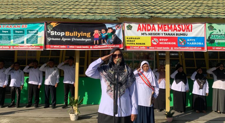 Kusan Hilir (MTsN 1 Tanbu) – Madrasah Tsanawiyah Negeri 1 Tanah Bumbu (MTsN 1 Tanbu) menggelar upacara bendera hari Senin dengan khidmat. Dalam amanatnya, Pembina upacara Norhayati, S.Pd,I menekankan pentingnya menanamkan sikap rendah hati terutama dalam proses menimba ilmu.