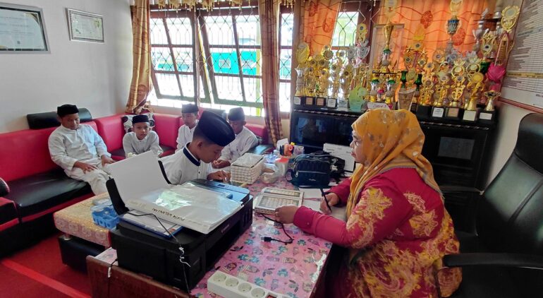 Kusan Hilir (MTsN 1 Tanbu) – Madrasah Tsanawiyah Negeri 1 Tanah Bumbu (MTsN 1 Tanbu) mencananngkan program Tahsin Al-Qur’an, sebagai langkah awal implementasi program ini, madrasah mengadakan tes baca Al-Qur’an secara menyeluruh bagi seluruh siswa-siswi kelas VII hingga IX. Kegiatan ini bertujuan untuk memetakan kemampuan dasar membaca Al-Qur’an setiap siswa, Jum’at (19/09/25).