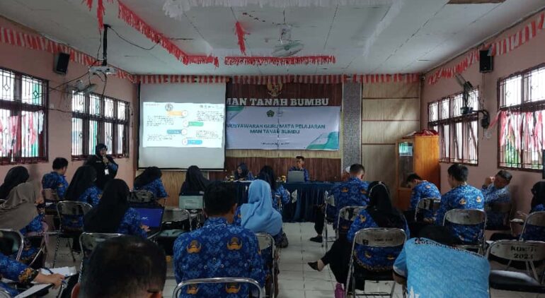 Kusan Hilir (MAN Tanbu) – Dewan guru Madrasah Aliyah Negeri (MAN) Tanah Bumbu mengikuti Workshop Kurikulum Berbasis Cinta (KBC) yang digelar dalam forum Musyawarah Guru Mata Pelajaran (MGMP) tingkat madrasah, Rabu (17/09/2025).