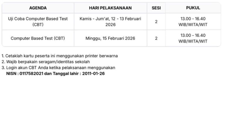 Kusan Hilir (MTsN 1 Tanbu) – Tiga siswa Madrasah Tsanawiyah Negeri 1 Tanah Bumbu (MTsN 1 Tanbu) lulus seleksi administrasi Seleksi Nasional Murid Baru (SNMB) Madrasah Aliyah Negeri Insan Cendekia Tanah Laut (MAN IC Tala), Rabu (11/02/26).