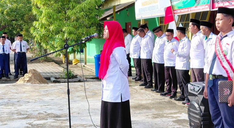 Angsana (MTs Syarif Ali) – Dalam pelaksanaan upacara bendera yang berlangsung pada Senin pagi di halaman Madrasah Tsanawiyah (MTs) Syarif Ali, Kepala Madrasah M.Assegaf bertindak sebagai pembina upacara dan menyampaikan amanat yang mengangkat tema pentingnya kejujuran dalam kehidupan sehari-hari di lingkungan sekolah, Senin (04/08/2025).