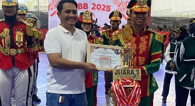 Satui (MTsN 3 Tanbu) – Kepala Madrasah Tsanawiyah Negeri (MTsN) 3 Tanah Bumbu, Muhaimin, S. Ag menerima Trofi Juara Lomba Ketangkasan Baris Berbaris (LKBB) yang diselenggarakan oleh Mahendra Grup Perkasa (MGP) Satui Tahun 2025.