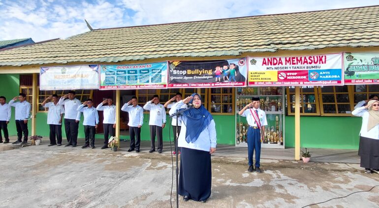 Kusan Hilir (MTsN 1 Tanbu) – Seluruh siswa-siswi Madrasah Tsanawiyah Negeri 1 Tanah Bumbu (MTsN 1 Tanbu) melaksanakan kegiatan upacara bendera dengan khidmad bertempat di halaman madrasah, Senin (06/10/25).