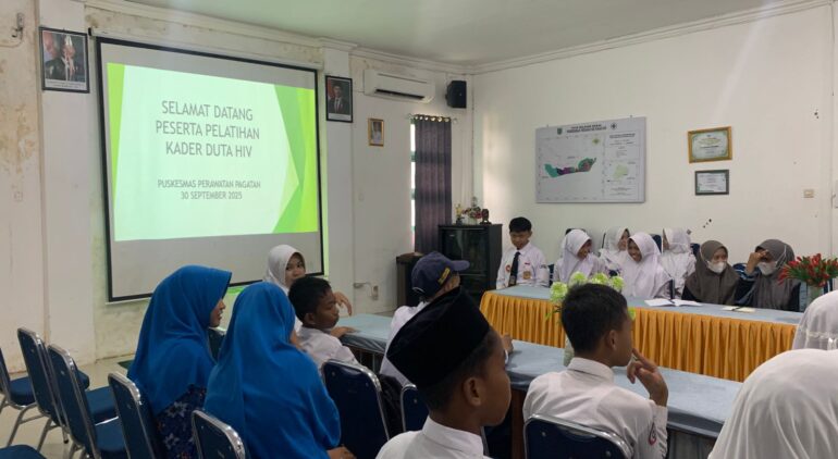 Kusan Hilir (MTsN 1 Tanbu) – Dua siswi Madrasah Tsanawiyah Negeri 1 Tanah Bumbu (MTsN 1 Tanbu) turut serta dalam Pelatihan Kader Duta HIV. Kegiatan ini diselenggarakan oleh Pusat Kesehatan Masyarakat (Puskesmas) Perawatan Pagatan dan bertempat di Aula Puskesmas Pagatan.