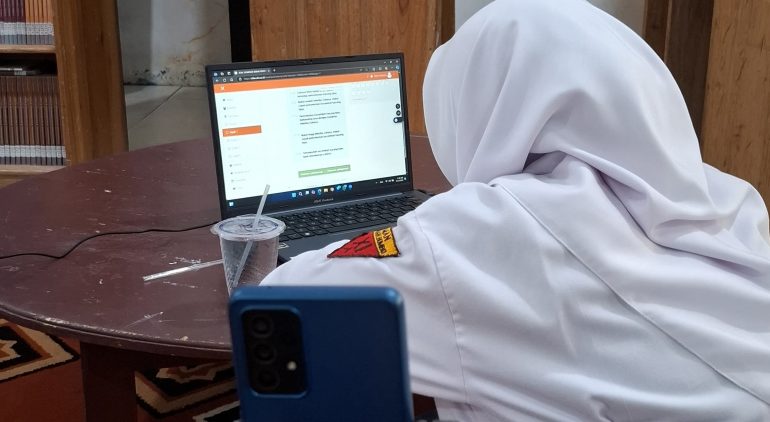 Kusan Hilir (MAN Tanbu) – Guru Prakarya sekaligus Ekonomi Khalfia Khairina, S.Pd memanfaatkan teknologi digital dalam proses pembelajaran. Para siswa-siswi diajak untuk belajar membuat poster kuliner Bugis menggunakan aplikasi desain populer, Canva.