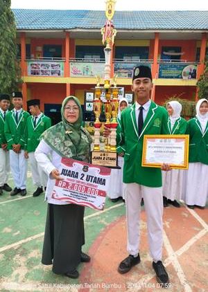 Satui (MTsN 3 Tanbu) – Tim LKBB Madrasah Tsanawiyah Negeri 3 Tanah Bumbu serahkan Trofi kejuaraan ke madrasah. Sebagaimana yang dilansir pada pemberitaaan sebelumnya bahwa tim LKBB MTsN 3 Tanah Bumb telah berhasil merebut juara kedua pada Gelaran LKBB Bhayangkara Prestasi yang diselenggarakan oleh Kepolisian Sektor Satui dalam rangka Memperingati Hari Sumpah Pemuda yang ke- 96.