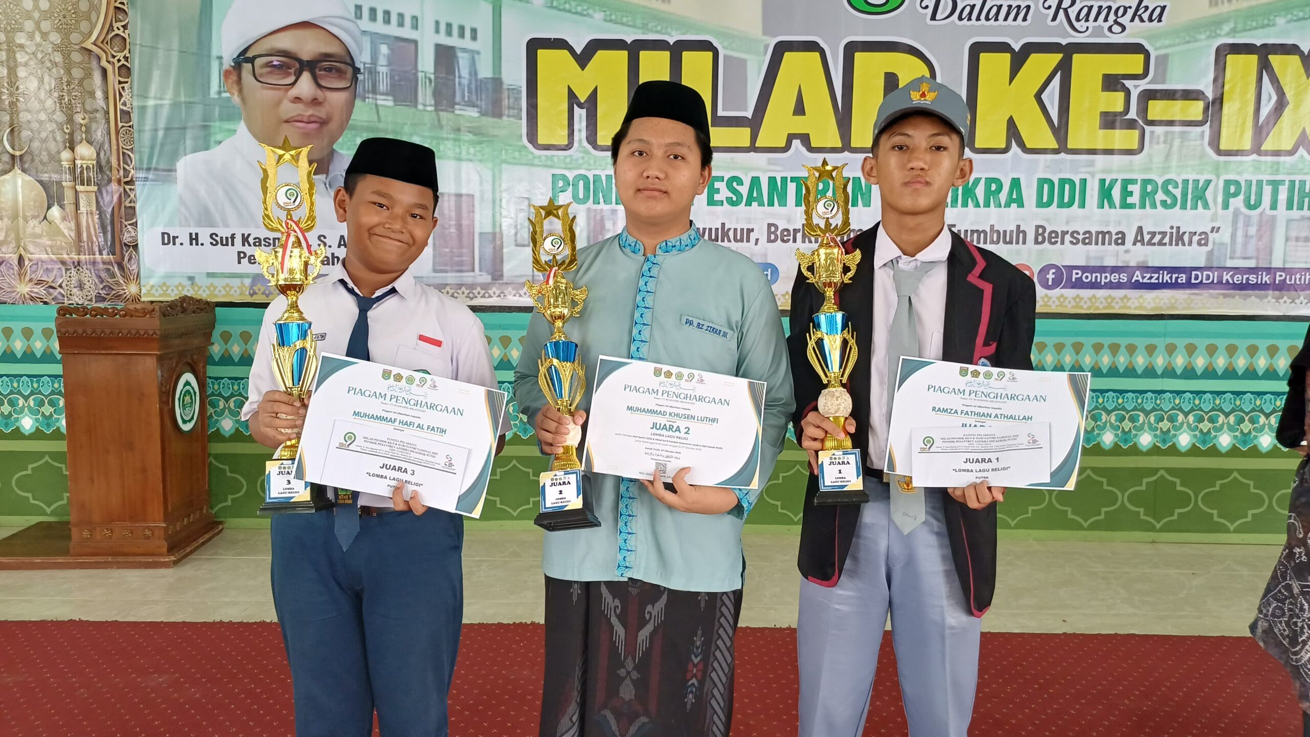 Kusan Hilir (MTsN 1 Tanbu) Dua siswa Madrasah Tsanawiyah Negeri 1 Tanah Bumbu (MTsN 1 Tanbu) meraih juara pada lomba lagu religi Milad ke-IX Pondok Pesantren (Ponpes) Azzikra darud Dakwal Wal Irsyad (DDI) Kersik Putih yakni Juara 3 kategori putra dan Juara 2 kategori Putri, Rabu (29/10/25).