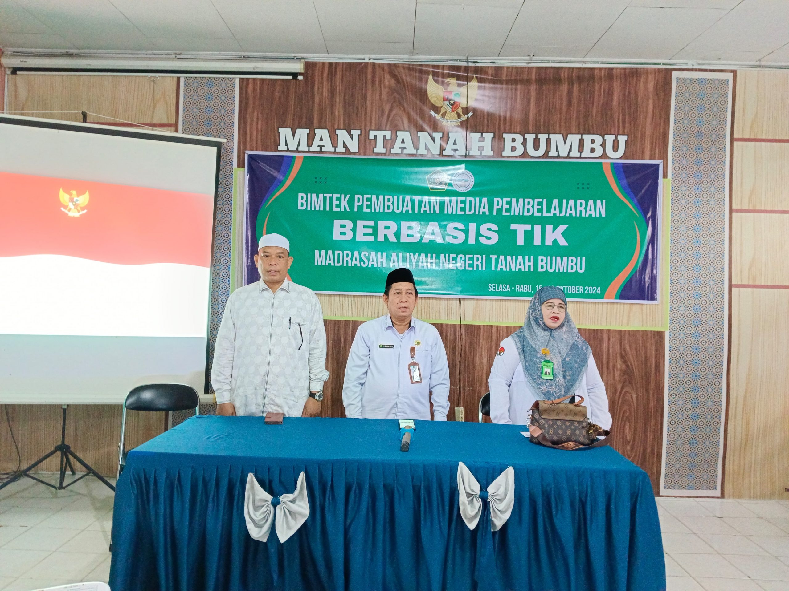 Kusan Hilir (MAN Tanbu) – Kepala Madrasah Aliyah Negeri (MAN) Tanah Bumbu (Tanbu) terus berkomitmen mendukung digitalisasi pembelajaran dengan mengadakan Bimbingan Teknis (Bimtek) pembuatan media pembelajaran berbasis Teknologi Informasi dan Komunikasi (TIK).