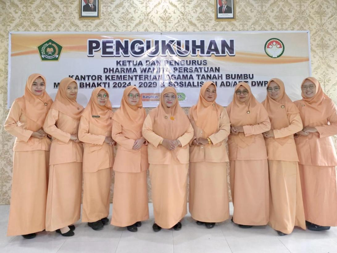 Kegiatan ini juga disertai dengan sosialisasi Anggaran Dasar/Anggaran Rumah Tangga (AD/ART) DWP melalui zoom meeting. Acara berlangsung di aula Kantor Kemenag Tanbu dan diikuti oleh seluruh pengurus DWP Kantor Kemenag Tanbu, Selasa (04/03/25).