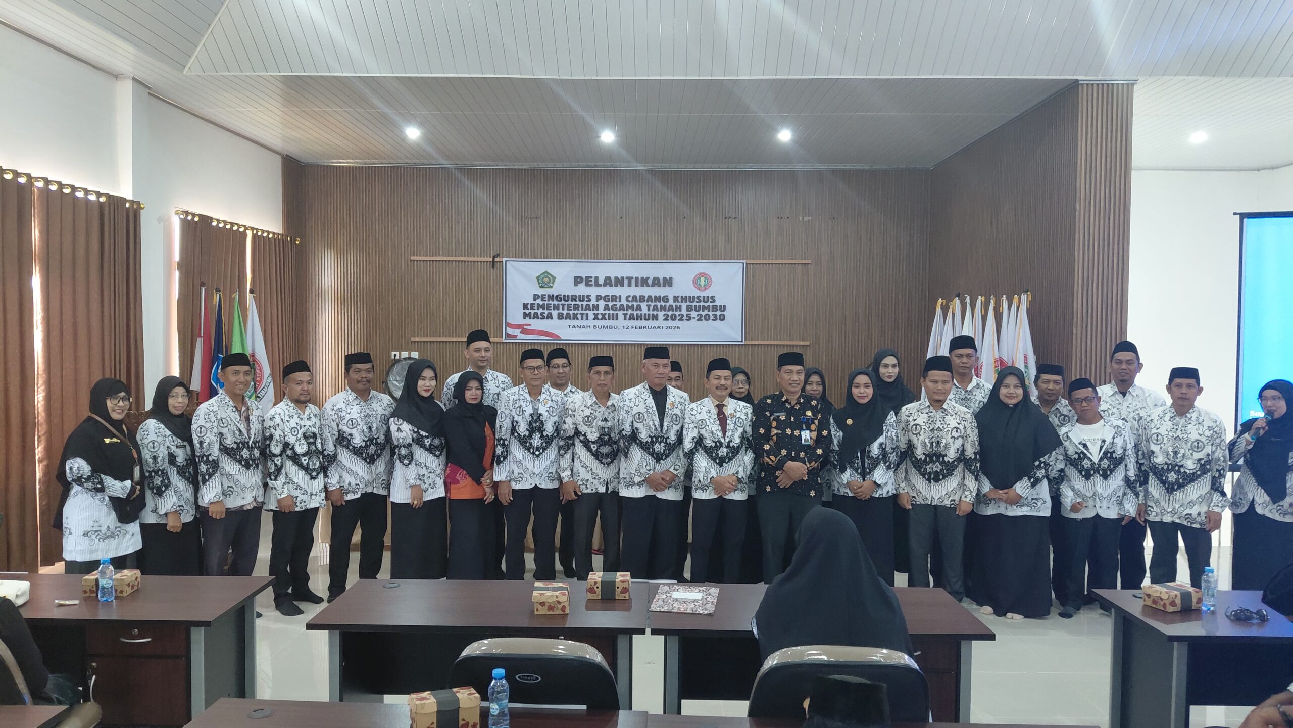 Bertempat di Aula Gedung PGRI Kabupaten yang bertempat di Gedung PGRI Kabupaten Tanah Bumbu dilantik pengurus PGRI cabang khusus Kemenag dengan Ketua Muhaimin, S.Ag, Wakil Ketua Lilik Yulianti, M.Pd dan Ahyani, S.Pd.I, Sekretaris Ali Wardoyo, S.Pd dan M. Akmal, S.Sos, Bendahara Iliyu Maulidiyah, S.Si, Kamis (12/02/26).