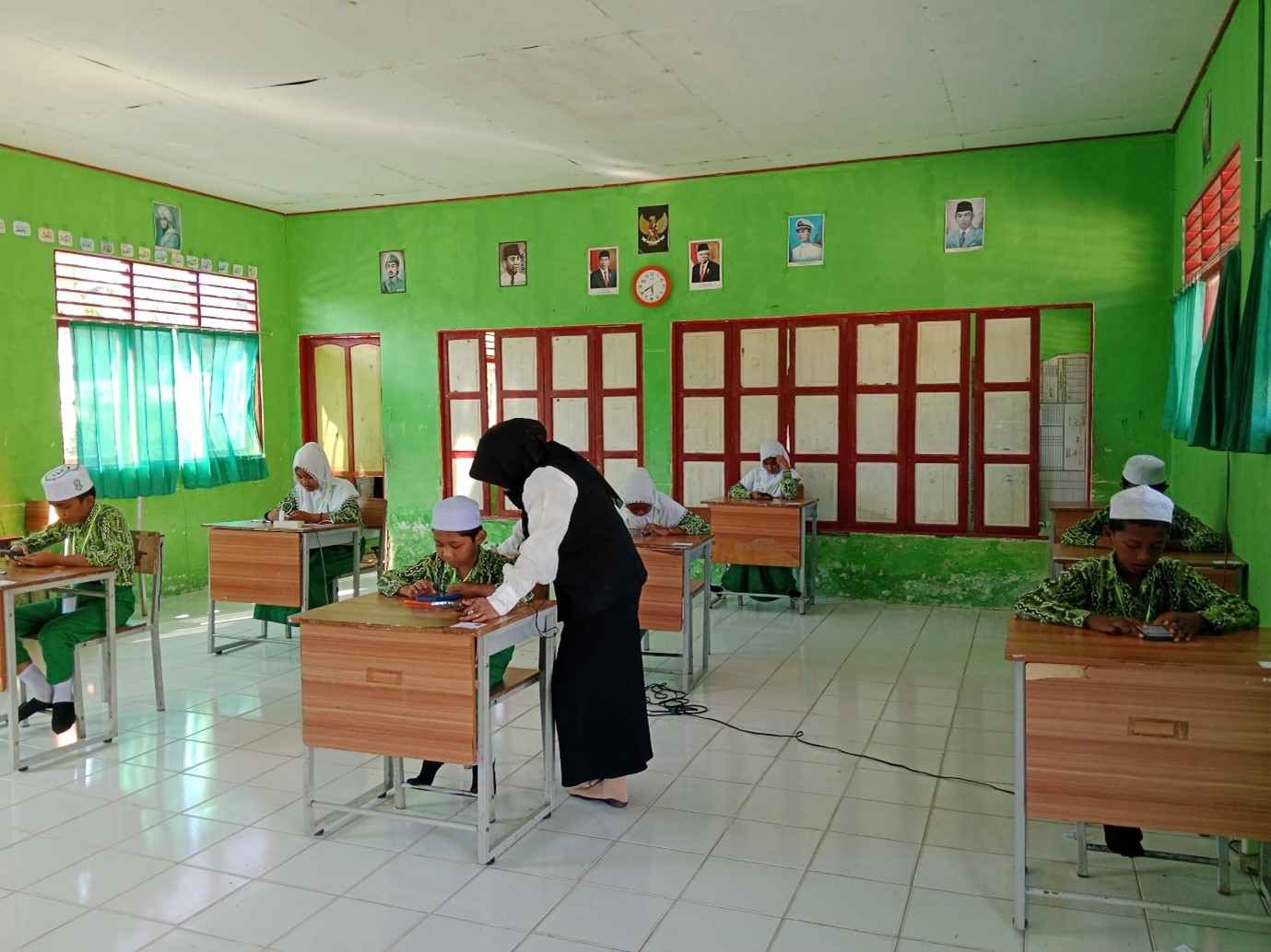 “Hari ini mata pelajaran yang diujikan yaitu Bahasa Indonesia dan fiqih dan para siswa terpantau tertib mengikuti agenda AM hari ini,” tuturnya.