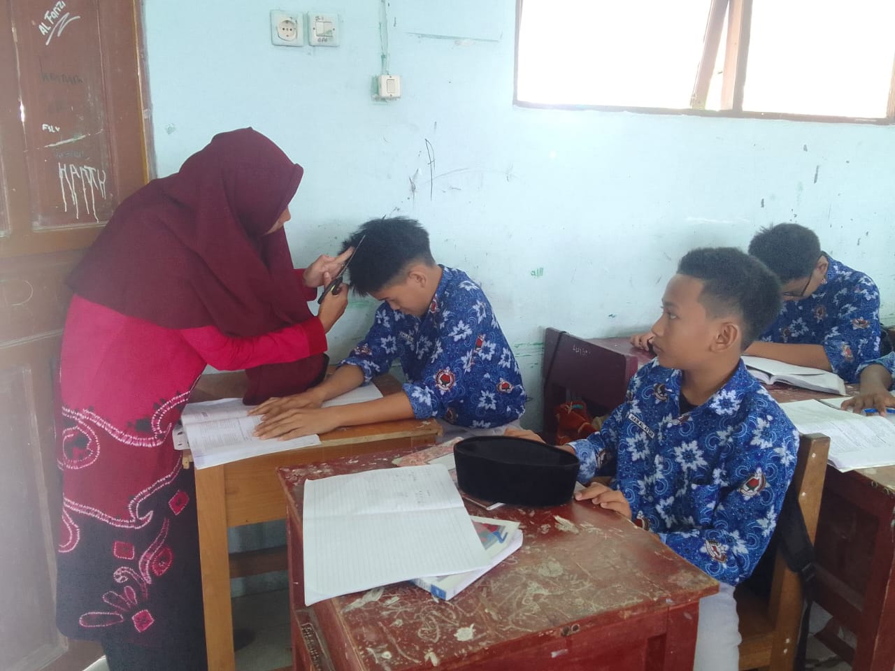 Jalankan Kedisiplinan, Guru BK MTsN 1 Tanah Bumbu Gelar Razia Ketertiban Siswa