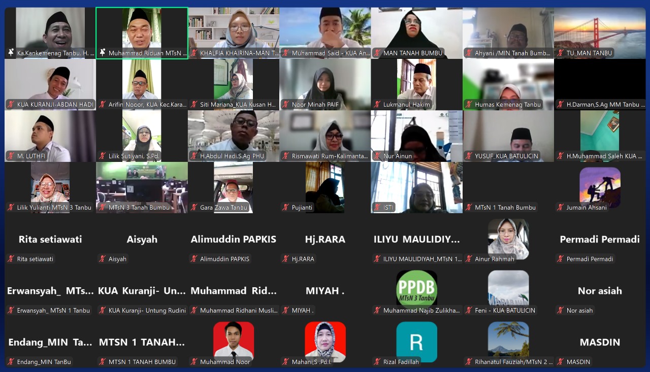 Kusan Hilir (MAN Tanbu) – Kepala Madrasah Aliyah Negeri (MAN) Tanah Bumbu, Dra. Hj. Hikmah, MM., bersama seluruh Guru dan Tenaga Kependidikan (GTK) yang berstatus Aparatur Sipil Negara (ASN), turut serta dalam Zoom Koordinasi SKP Triwulan II yang diselenggarakan oleh Kantor Kementerian Agama (Kankemenag) Kabupaten Tanah Bumbu.