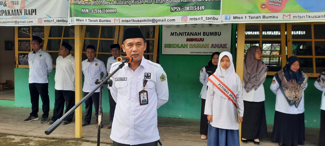 Kusan Hilir (MTsN 1 Tanbu) – Kepala Seksi Pendidikan Madrasah (Kasi Penmad) Kantor Kementerian Agama Kabupaten Tanah Bumbu (Kemenag tanbu), H. Mahmud, S.H.I., M.A., menjadi pembina upacara, dalam amanatnya H.Mahmud menyampaikan beberapa poin penting terkait pembelajaran di bulan Ramadhan dan imbauan kepada siswa serta seluruh Aparatur Sipil Negara (ASN) Madrasah Tsanawiyah Negeri 1 Tanah Bumbu (MTsN 1 Tanbu), Senin (10/02/25).