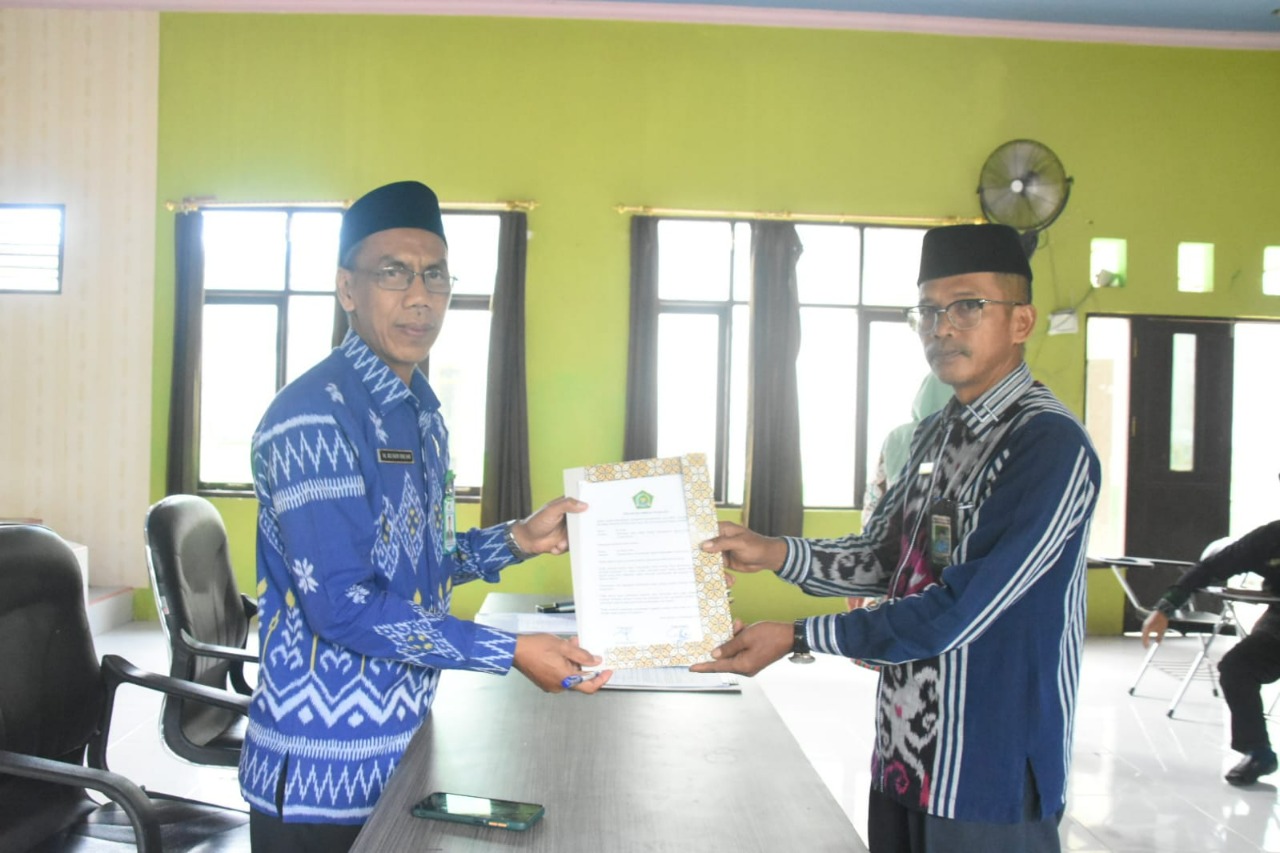 Penandatanganan perjanjian kinerja dan pakta integritas dilakukan oleh Kasubag TU, Kepala Seksi (Kasi) Pendidikan Madrasah, Kasi Pendidikan Agama Islam, Kasi Bimas Islam, Kasi PHU, Kepala MAN, dan Kepala MTsN.