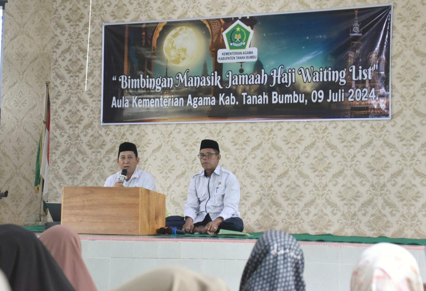 Batulicin (Kemenag Tanbu) – Kementerian Agama (Kemenag) Kabupaten Tanah Bumbu melalui Seksi Penyelenggara Haji dan Umrah (PHU) menyelenggarakan kegiatan Bimbingan Manasik Jemaah Haji Waiting List bertempat di Aula Kantor Kemenag Tanah Bumbu, Selasa (9/7/24).