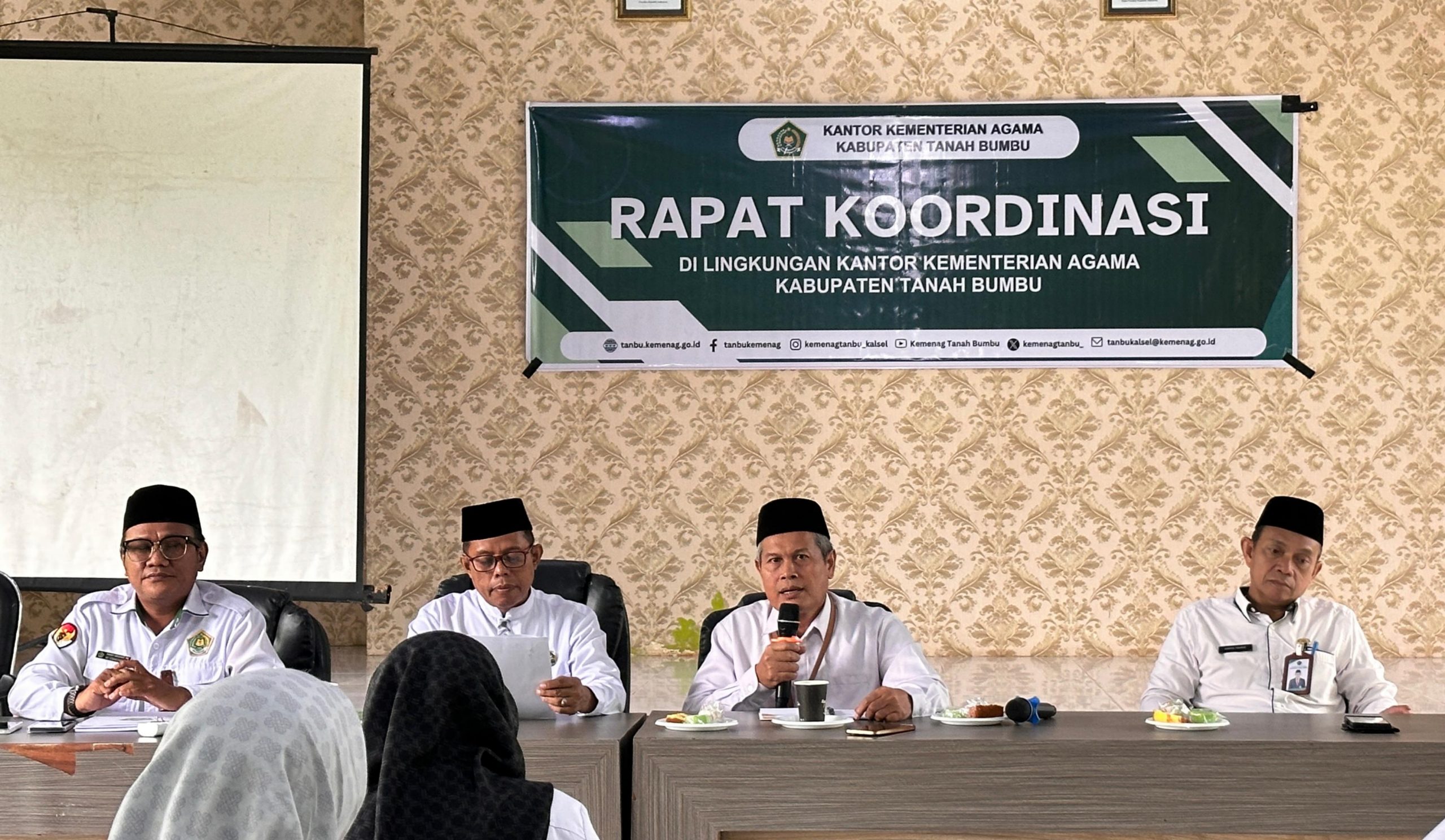 Plt. Kepala Subbagian TU (Kasubbag TU) Kantor Kemenag Tanah Bumbu H. Lukmanul Hakim, S.Ag menyampaikan agar jajaran Kantor Kemenag dan satker madrasah juga KUA dapat menyusun langkah awal dan saling berkoordinasi untuk untuk mendukung kinerja organisasi.