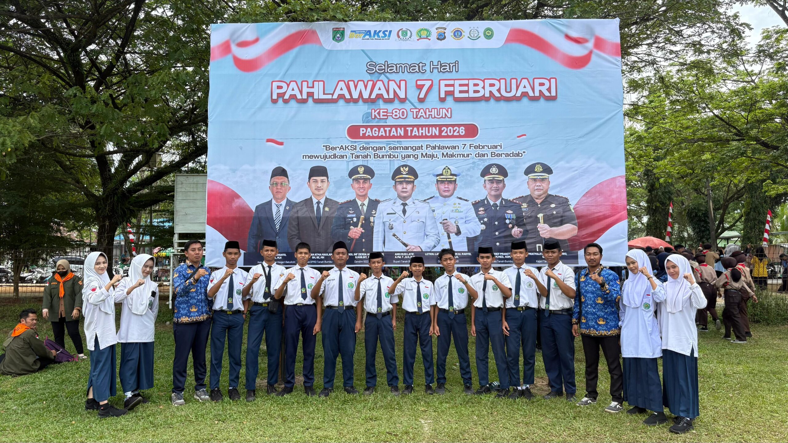 Kusan Hilir (MTsN 1 Tanbu) – Perwakilan siswa-siswi Madrasah Tsanawiyah Negeri 1 Tanah Bumbu (MTsN 1 Tanbu) mengikuti upacara dalam rangka memperingati Hari Pahlawan 7 Februari 2026. Kegiatan yang berlangsung pada Minggu (08/02/2026) ini dipusatkan di Lapangan Sepak Bola 7 Februari Kota Pagatan.