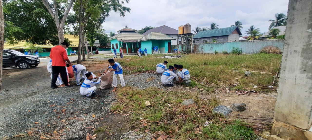 Tidak hanya ruang kelas, halaman madrasah juga menjadi sasaran utama dalam aksi bersih-bersih ini. Sampah-sampah yang berserakan dikumpulkan dan dibuang pada tempat yang telah disediakan. Beberapa siswa juga terlihat memangkas rumput yang mulai tumbuh tinggi di sekitar halaman madrasah.