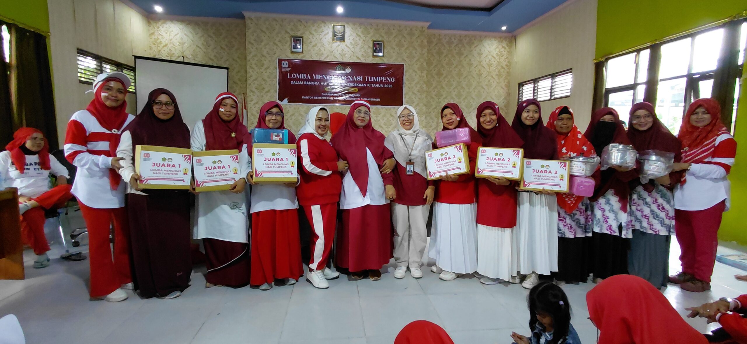 Setelah melalui penilaian dewan juri, DWP MTsN 1 Tanah Bumbu berhasil meraih juara pertama dengan kreasi tumpeng yang dihiasi sayuran dan lauk berwarna-warni, melambangkan persatuan dan keberagaman bangsa Indonesia.