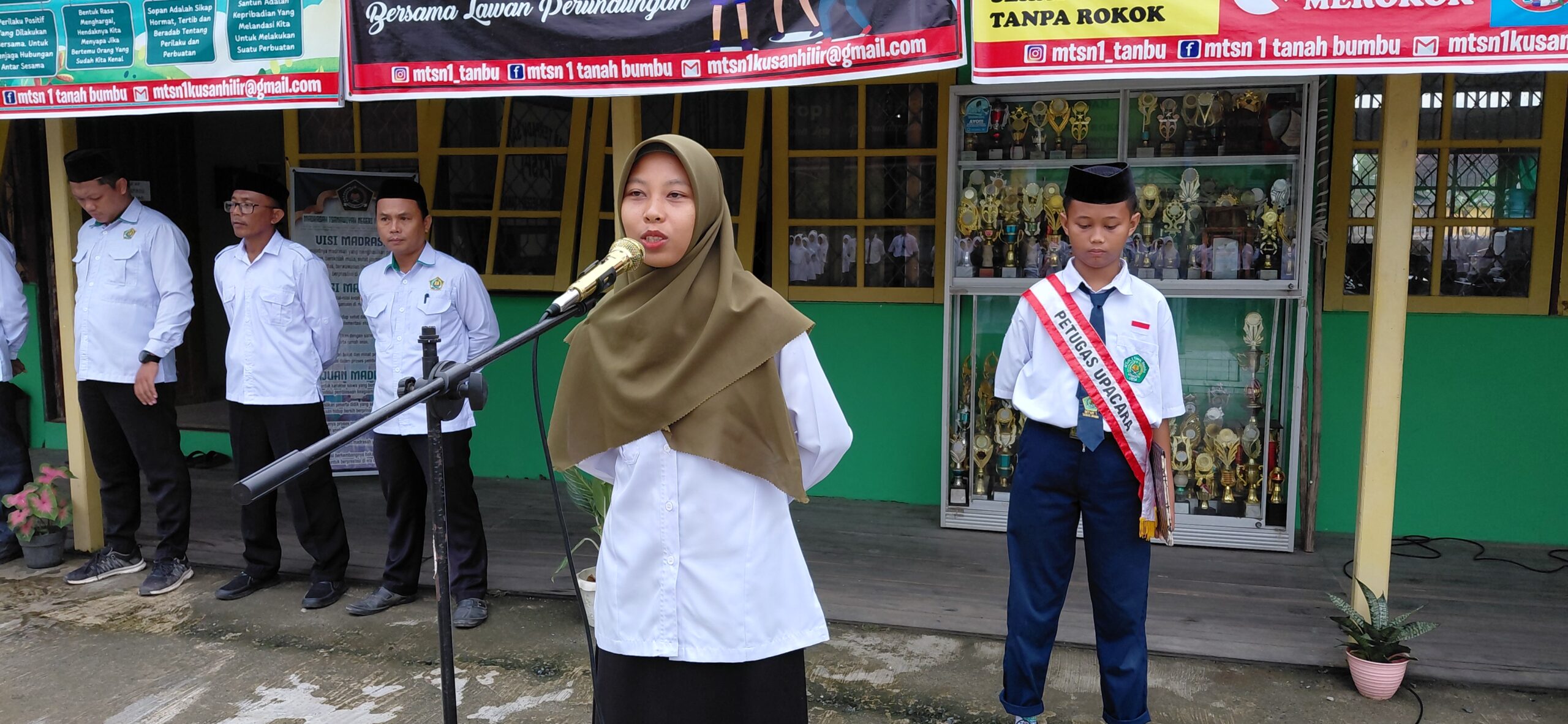 Kusan Hilir (MTsN 1 Tanbu) – Pembina upacara Asti Wulandari, S.Psi.I dalam amanatnya mengajak siswa-siswi Madrasah Tsanawiyah Negeri 1 Tanah Bumbu (MTsN 1 Tanbu) mengasah pentingnya kepekaan sosial dengan saling menjaga dan membantu menegakkan tata tertib madrasah, Senin (08/09/25).