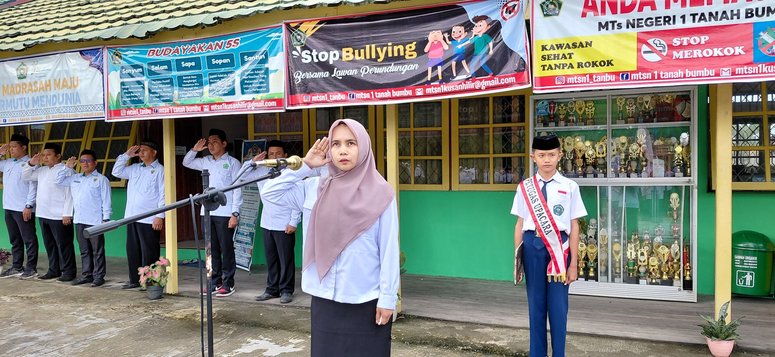 Kusan Hilir (MTsN 1 Tanbu) – Madrasah Tsanawiyah Negeri 1 Tanah Bumbu (MTsN 1 Tanbu) menggelar upacara bendera rutin pada Senin pagi. Upacara kali ini staf Tata Usaha (TU), Bahriah, yang bertindak sebagai pembina upacara, Senin (15/09/2025).