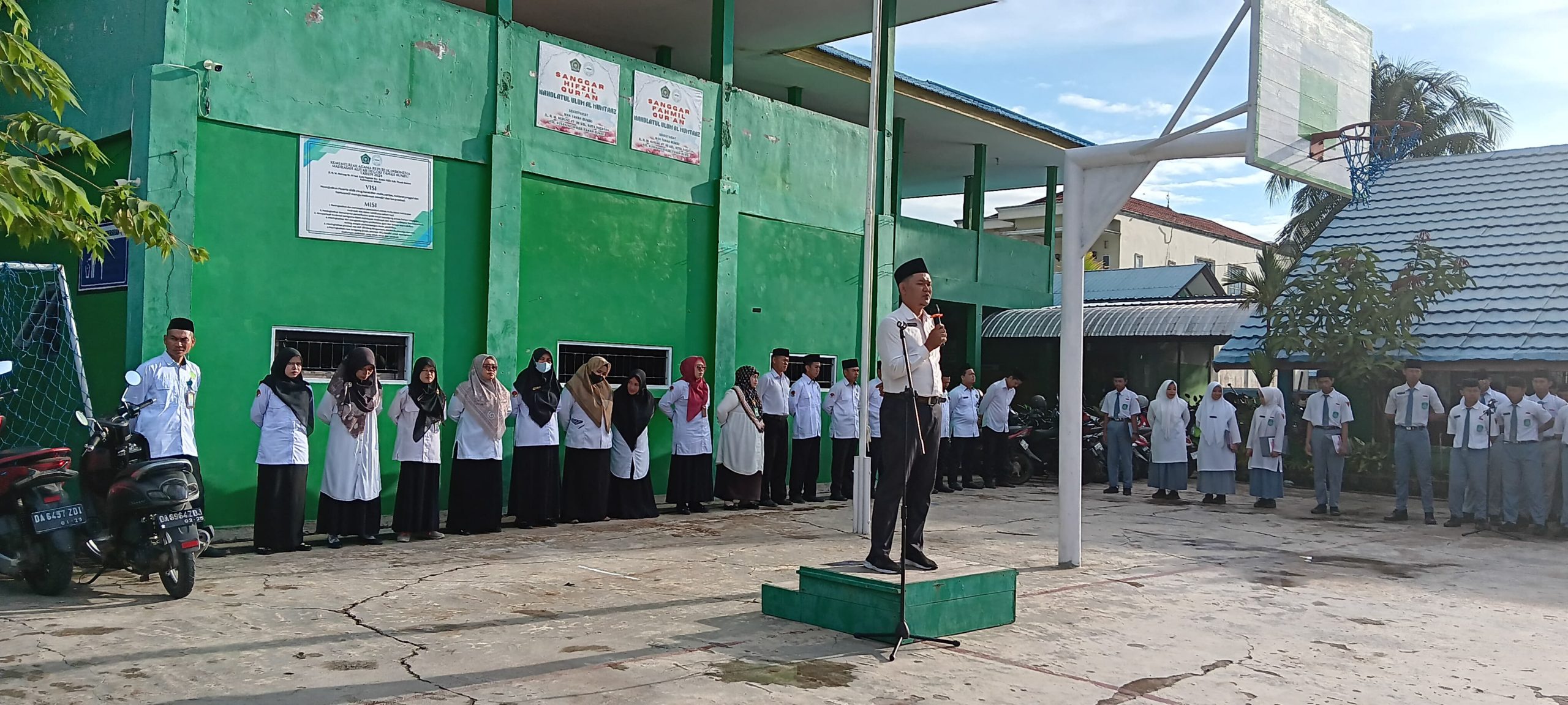 Kusan Hilir (MAN Tanbu) – Upacara bendera Senin pagi di salah satu sekolah di Kusan Hilir berlangsung dengan penuh khidmat. Seluruh siswa mengikuti jalannya upacara dengan tertib di lapangan sekolah. Kegiatan ini merupakan agenda rutin yang bertujuan untuk menanamkan disiplin dan rasa cinta tanah air kepada para siswa.