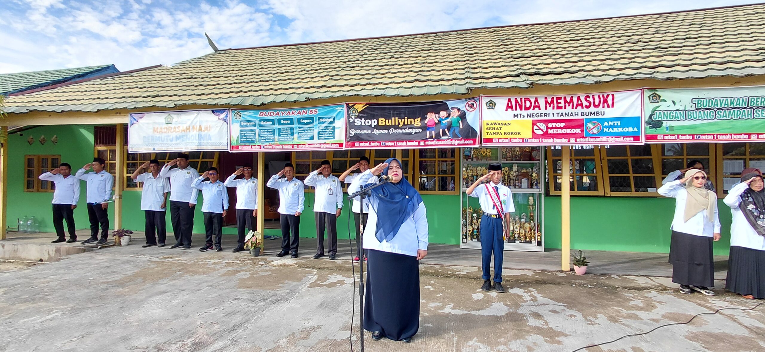 Kusan Hilir (MTsN 1 Tanbu) – Seluruh siswa-siswi Madrasah Tsanawiyah Negeri 1 Tanah Bumbu (MTsN 1 Tanbu) melaksanakan kegiatan upacara bendera dengan khidmad bertempat di halaman madrasah, Senin (06/10/25).