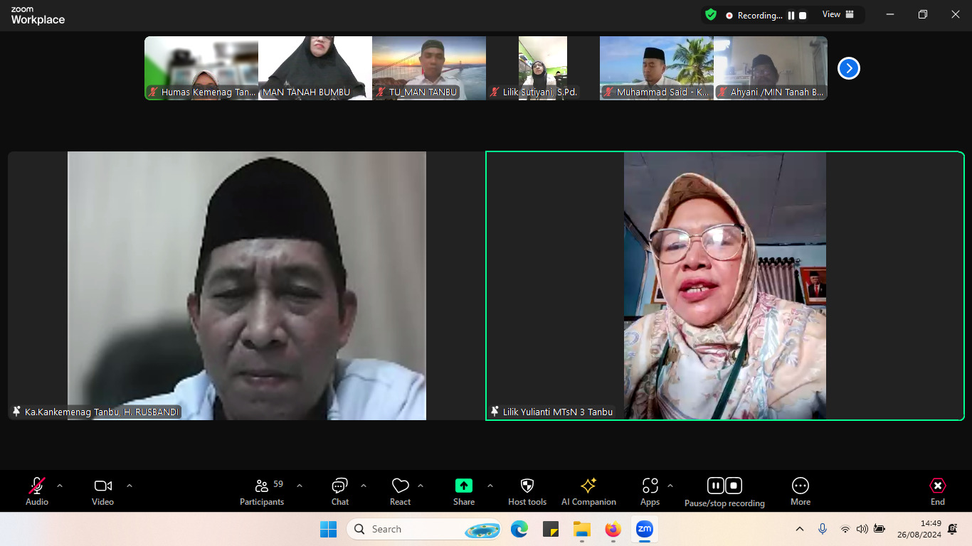 Hal tersebut disampaikan H. Rusbandi pada kegiatan Pembinaan Pembuatan SKP Triwulan II yang dilakukan secara virtual melalui Zoom Workplace yang diikuti seluruh ASN di lingkup Kemenag Tanah Bumbu, Senin (26/08/24).