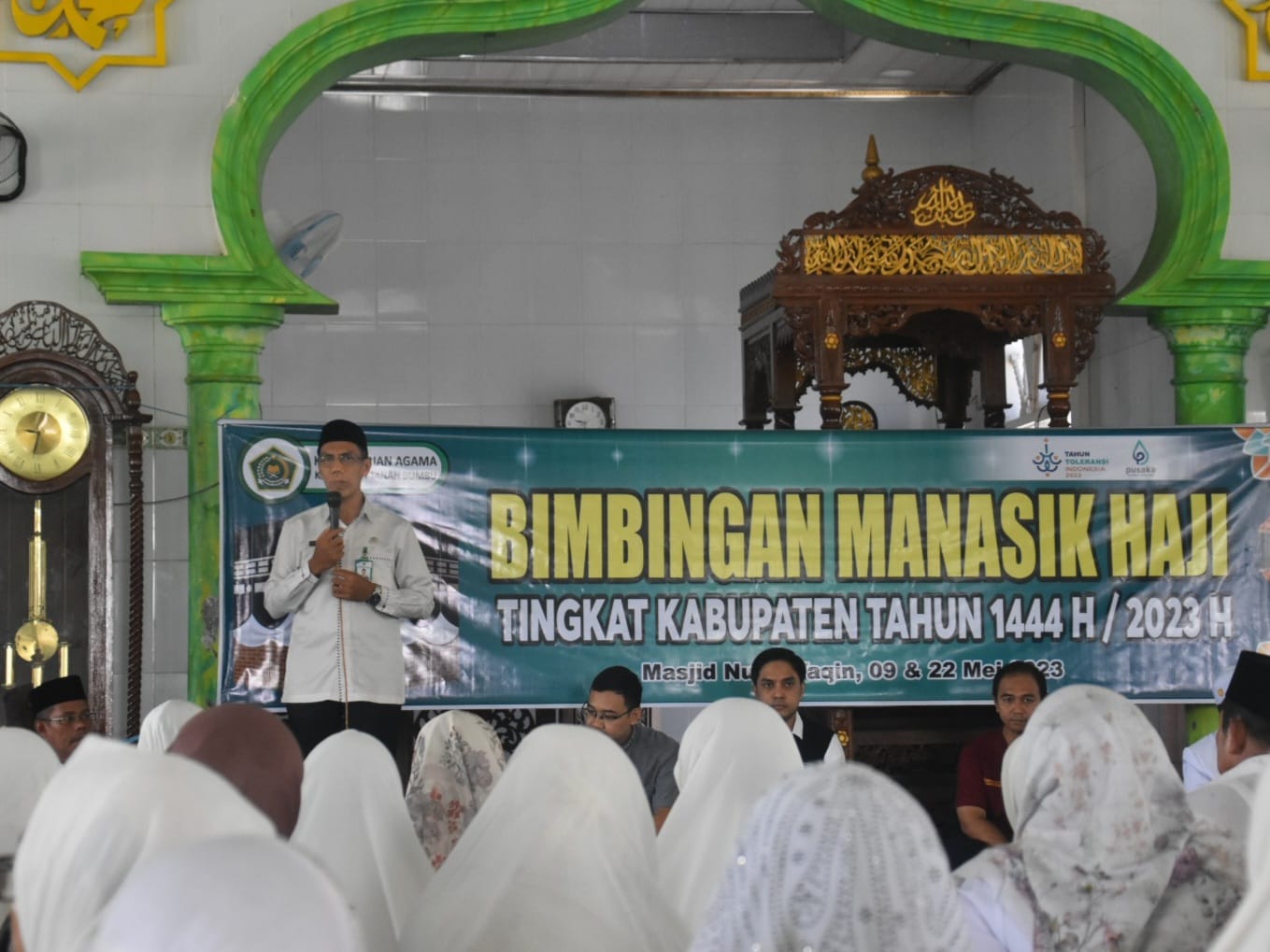 Batulicin (Kemenag Tanbu) – Kementerian Agama (Kemenag) Kabupaten Tanah Bumbu melalui Seksi Penyelenggara Haji dan Umrah (PHU) menyelenggarakan kegiatan pembukaan Bimbingan Manasik Haji Tahun 1443 H / 2022 M tingkat Kabupaten Tanah Bumbu yang berlangsung di Masjid Nurul Yaqin Kecamatan Batulicin, Selasa (09/05/22).