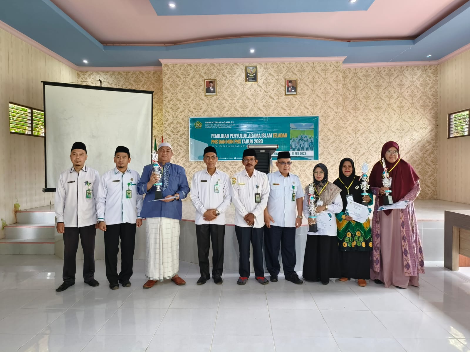 Adapun Juara 1 Penyuluh Agama Islam PNS yaitu Ainur Rahmah, serta Penyuluh Agama Islam Non PNS Juara 1 yaitu dari Kecamatan Satui Lisda Maulida, Juara 2 dari Kecamatan Simpang Empat M. Arpian, dan Juara 3 dari Kecamatan Batulicin Sri Winingsih.
