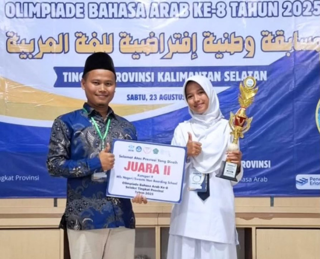 Satui (MTsN 3 Tanbu) – Peserta didik Madrasah Tsanawiyah Negeri (MTsN) 3 Tanah Bumbu atas nama Tiara Aliyatul Munisah berhasil membawa pulang trofi juara 2 Olimpiade Bahasa Arab (OBA) 8 Tingkat Provinsi Kalimantan Selatan setelah menyabet juara terbaik kedua.
