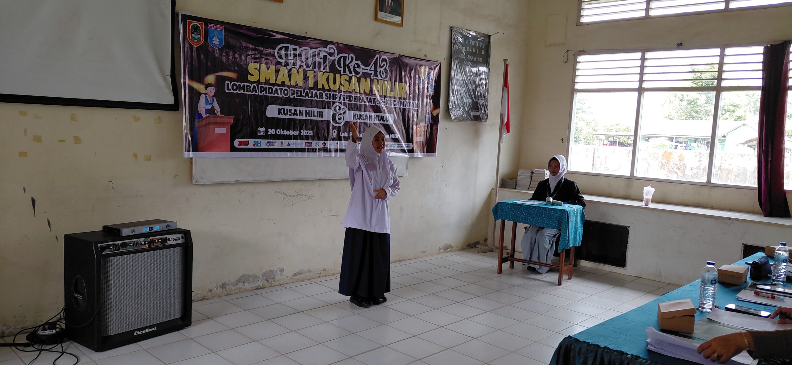 Kusan Hilir (MTsN 1 Tanbu) – Siswi Madrasah Tsanawiyah Negeri 1 Tanah Bumbu (MTsN 1 Tanbu) Alisya Salsabila Nadzifa ikuti lomba pidato pelajar Tingkat SMP/MTs pada Hari Ulang Tahun (HUT) ke-43 Sekolah Menengah Atas Negeri (SMAN) 1 Kusan Hilir, Senin (20/10/25).