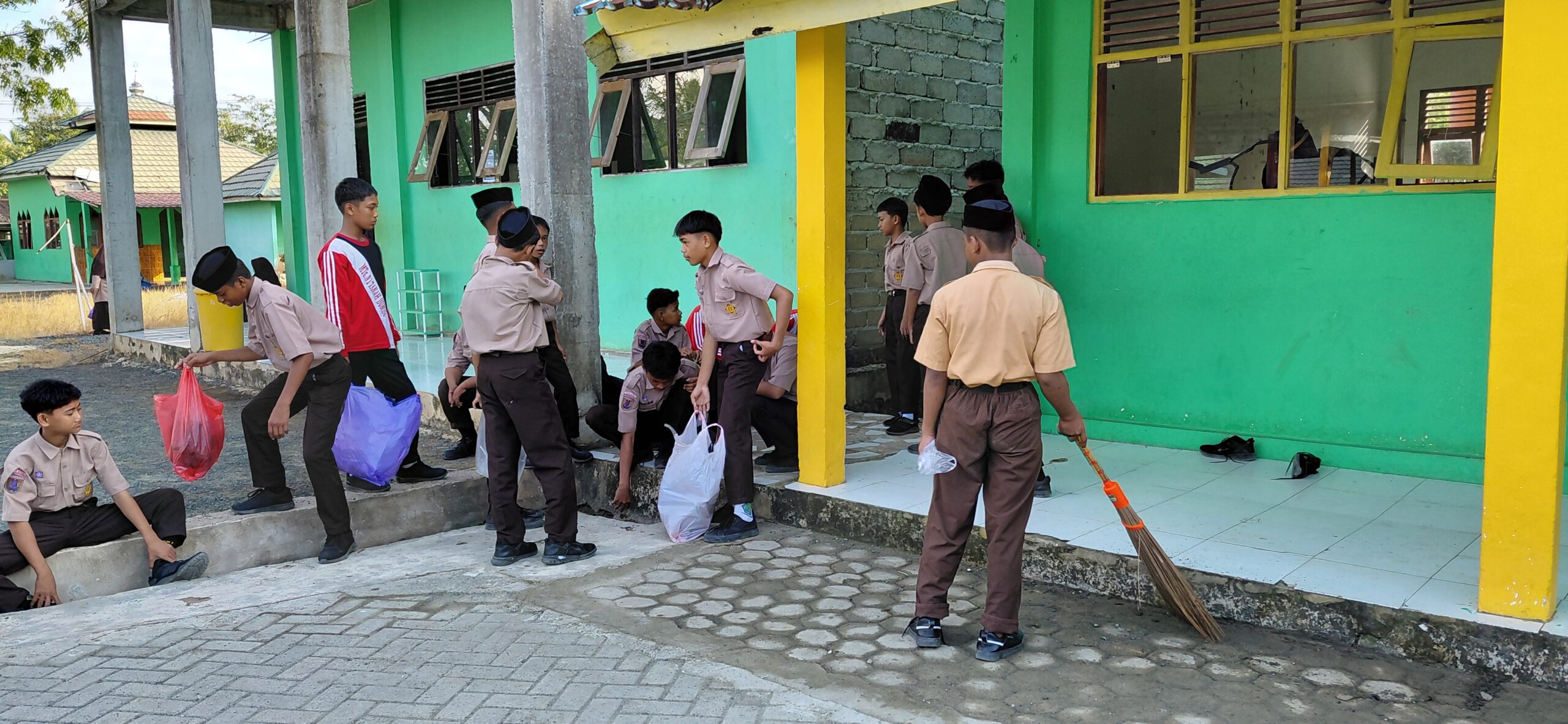 Kusan Hilir (MTsN 1 Tanbu) – Dalam rangka launching program Teratas (Terapkan Integritas) Madrasah Tsanawiyah Negeri 1 Tanah Bumbu (MTsN 1 Tanbu) melaksanakan kamis bersih yakni membersihakan halaman madrasah dari sampah terutama sampah plastik, Kamis (07/08/2025).