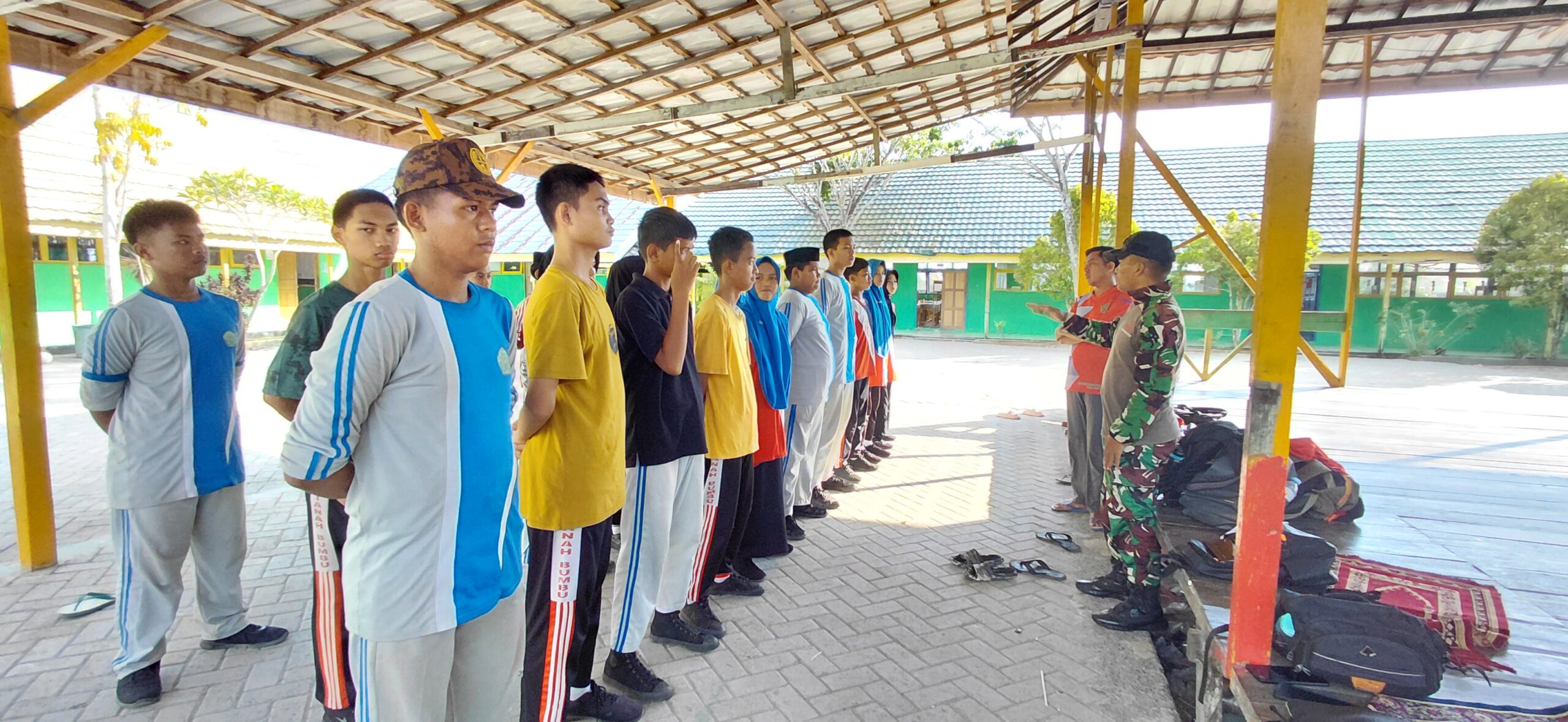 Kepala MTsN 1 Tanbu Hj. Hikmah menyampaikan apresiasi atas kerjasama yang baik antara madrasah dengan Koramil Pagatan.