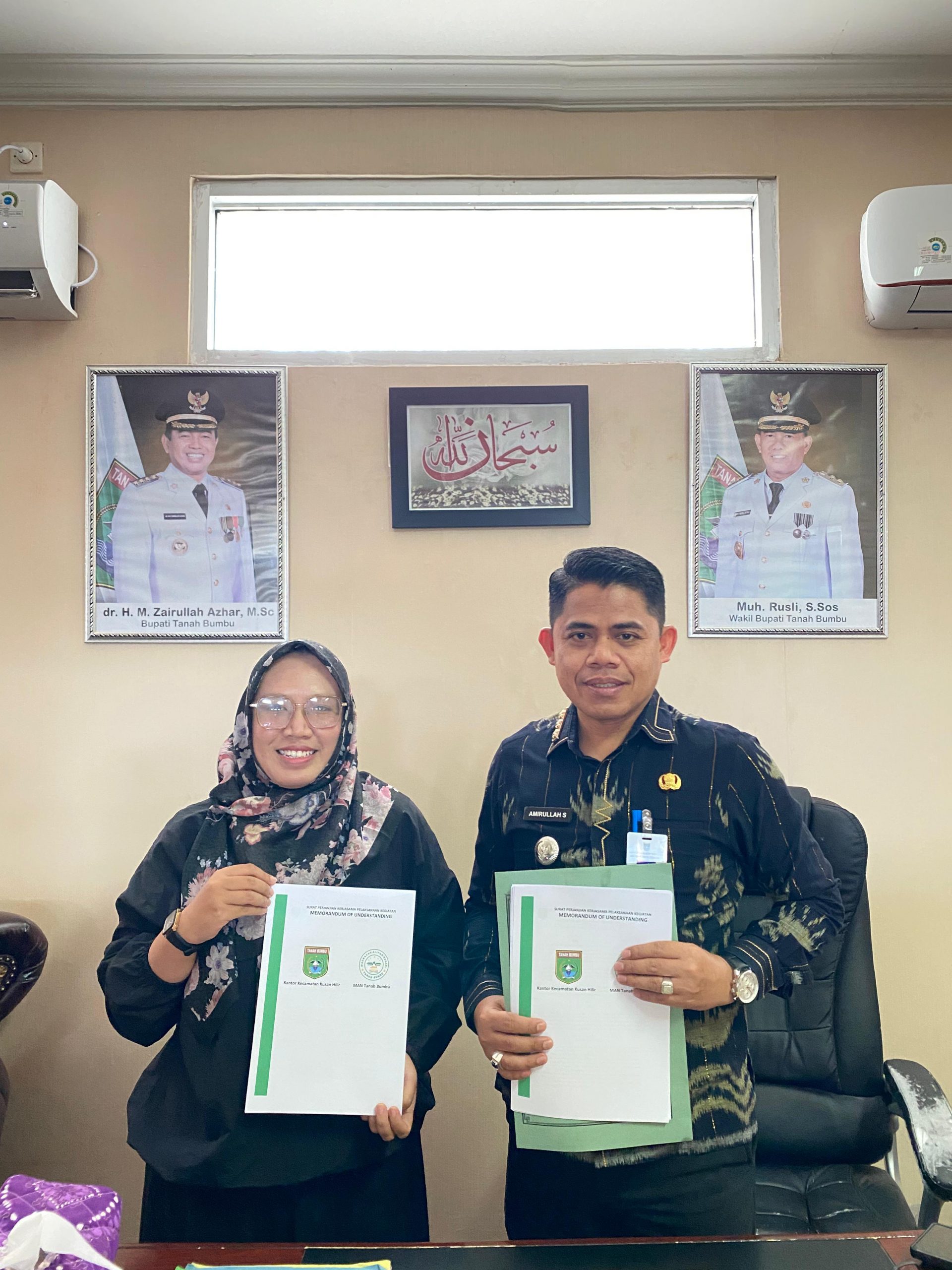 Kusan Hilir (MAN Tanbu) — Madrasah Aliyah Negeri (MAN) Tanah Bumbu memperkuat hubungan kerjasama dengan Kecamatan Kusan Hilir melalui penandatanganan Memorandum of Understanding (MoU). Wakamad Humas MAN Tanah Bumbu, Khalfia Khairina, S.Pd., bersama Camat Kusan Hilir, Amirullah S, S.Pd.I., M.AP., menyepakati sejumlah program yang akan mulai dilaksanakan pada November mendatang.