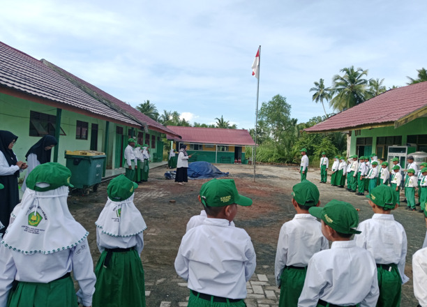 Dalam upacara bendera rutin yang dilaksanakan di Madrasah Ibtidaiyah (MI) Darul Mutammam, pembina upacara Harmawati menyampaikan amanat yang menggarisbawahi pentingnya menjaga kebersihan lingkungan madrasah, Senin (6/1/25).