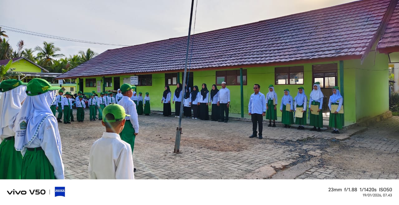 Petugas upacara kali ini dipercayakan kepada siswa kelas V dan VI. Seluruh rangkaian kegiatan berlangsung lancar dengan partisipasi aktif para siswa, guru, dan staf madrasah.
